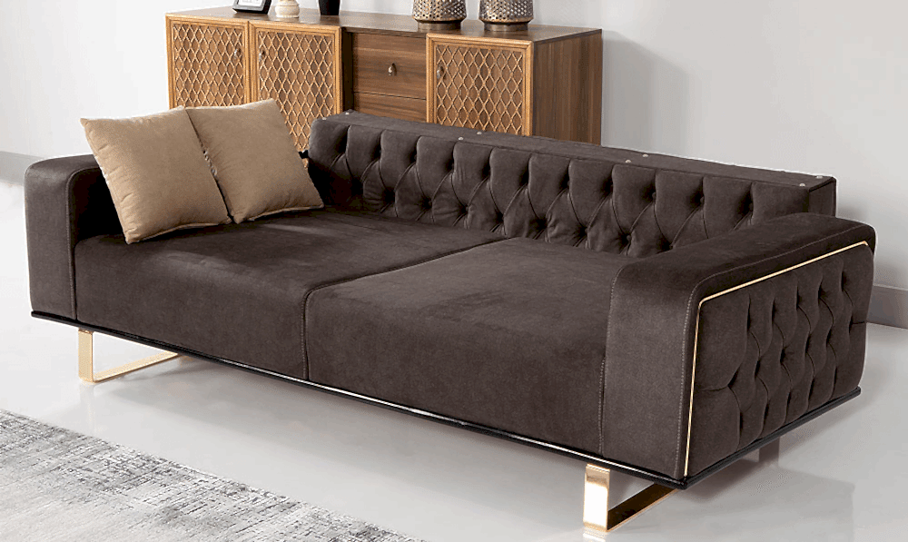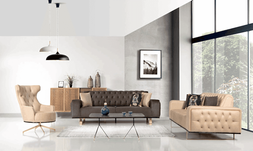 Şık, modern ve fonksiyonel. Gözünüze hitap eden eşsiz bir takım. Rahatlık ve konfor sağlayan rahat oturumu, sağlam ve kolay temizlenebilir yapısı, metal ayakları, chester detayları, 360 derece dönebilen tekli koltuğu, renk seçenekleri ve yatak olabilen yapısıyla salonlarınıza estetik getirecek.